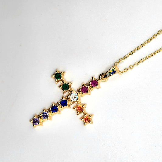 Colorful Rhinestone Cross Necklace