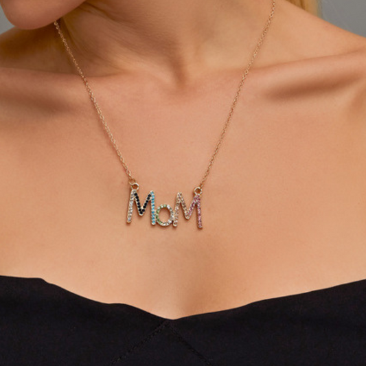 Colorful Rhinestone Mom Necklace