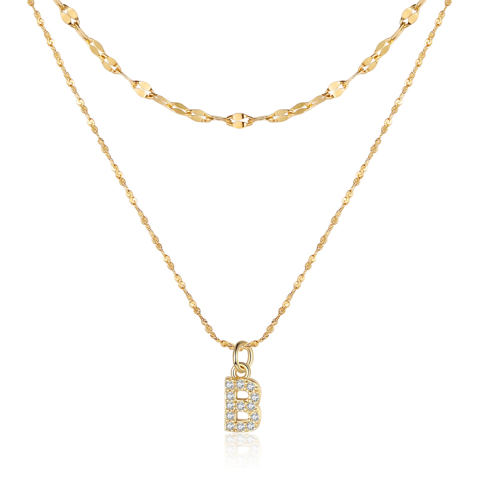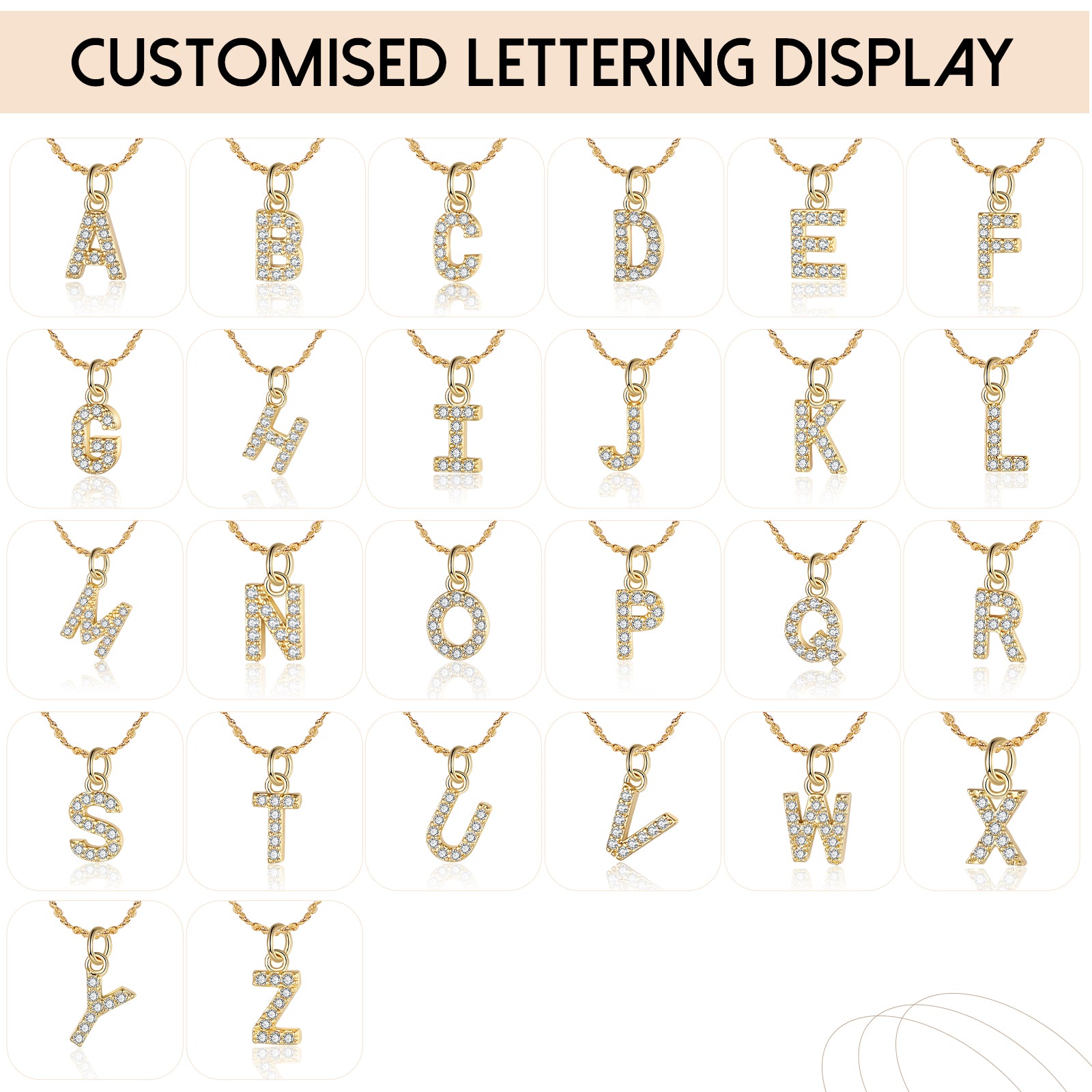 Drenched in bold gold plating, this stainless steel necklace features a striking rhinestone letter pendant measuring 11x6 mm.